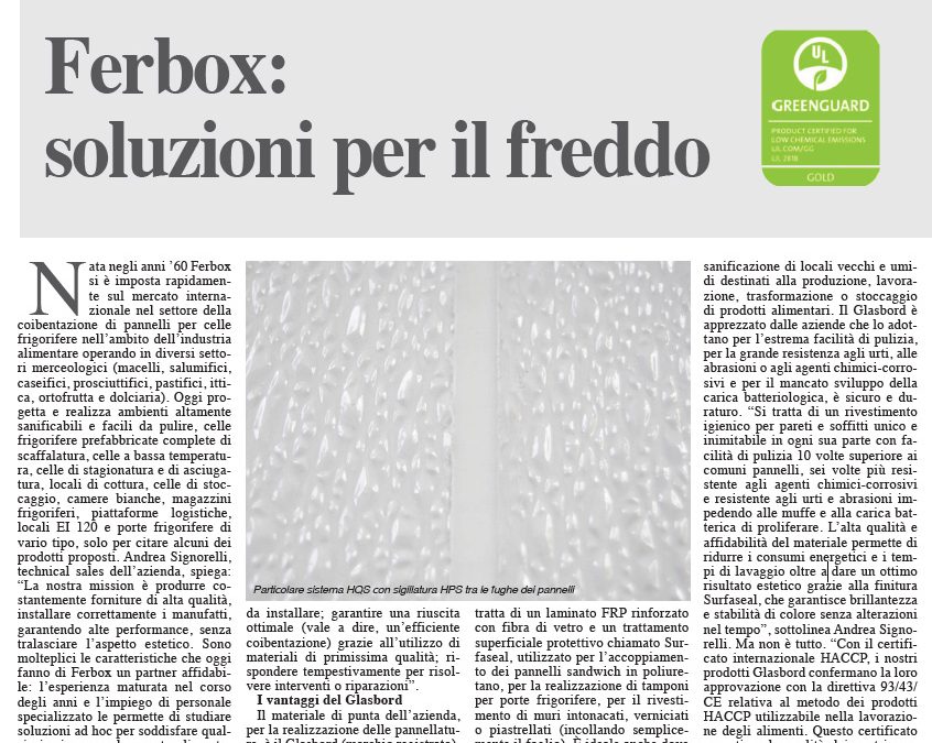 Nata negli anni ’60 Ferbox si è imposta rapidamente sul mercato internazionale nel settore della coibentazione di pannelli per celle frigorifere nell’ambito dell’industria alimentare operando in diversi settori merceologici (macelli, salumifici, caseifici, prosciuttifici, pastifici, ittica, ortofrutta e dolciaria)…